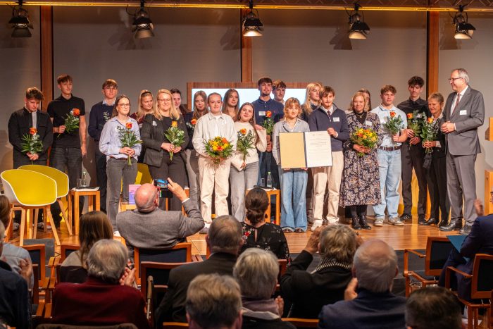 22.11.2025. Der bundesweite Verein Gegen Vergessen – Für Demokratie e.V. hat 27 Schülerinnen und Schüler des Friedrich-Engels-Gymnasiums in Senftenberg mit dem Waltraud-Netzer-Jugendpreis 2025 ausgezeichnet. Die Jugendlichen erhielten die Auszeichnung bei einer feierlichen Preisverleihung in der Landesvertretung von Baden-Württemberg beim Bund in Berlin für ihr Engagement im Rahmen des Buchprojektes „#FürDemokratieGegenExtremismus“.