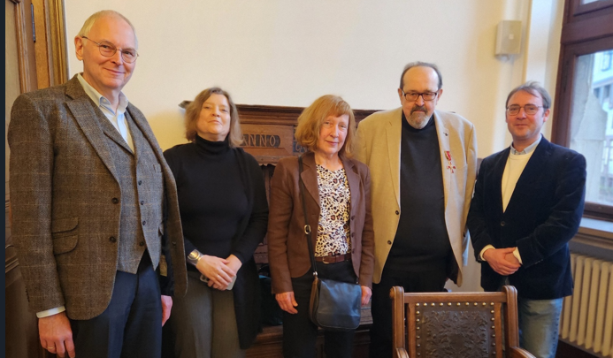 Neben Ehefrau Elke und seiner Familie gehörten der stellvertretende RAG-Sprecher Dr. Ralf Schäfer und die Personen, die in den benachbarten RAG das Sprecheramt bekleiden, zu den Ersten, die vor Ort gratulierten: So die Professorin Dr. Marie Elisabeth Müller, die im November 2024 die Düsseldorfer Gruppe ins Leben rief, und Stefan Querl aus der RAG im Münsterland, der gebürtig aus Duisburg stammt, Wolfgang Braun viel Rat und Hilfe verdankt und Grüße von Andreas Dickerboom, dem Sprecher aller RAGen im Vorstand übermittelte. Online ins Rathaus neben der Salvatorkirche zugeschaltet war u.a. Ruth Wunnicke, die im Namen von Geschäftsführer Dr. Michael Parak, der gesamten Berliner Geschäftsstelle und dem Bundesvorstand Anerkennung äußerte. Über Jahrzehnte ist Braun als Sprecher aktiv.